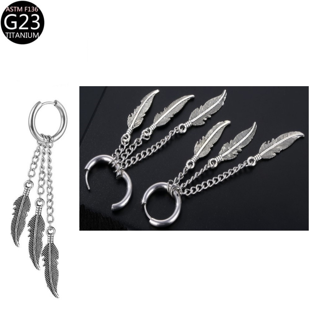 1 Paar Ohrringe Creolen aus Titanstahl mit 3 Federn Anhänger in Silber