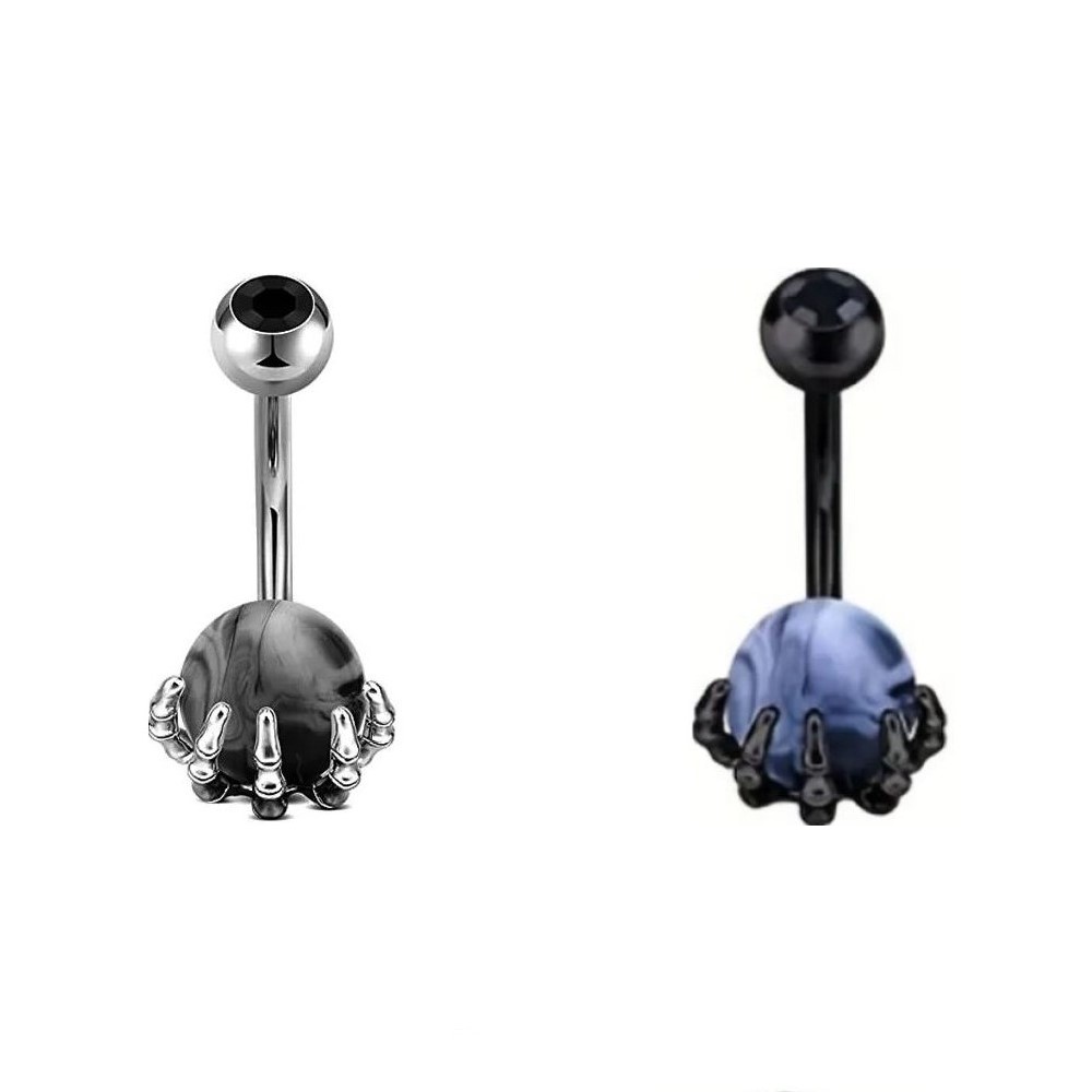 Bauchnabelpiercing Skelett Hand um marmorierte Kugel