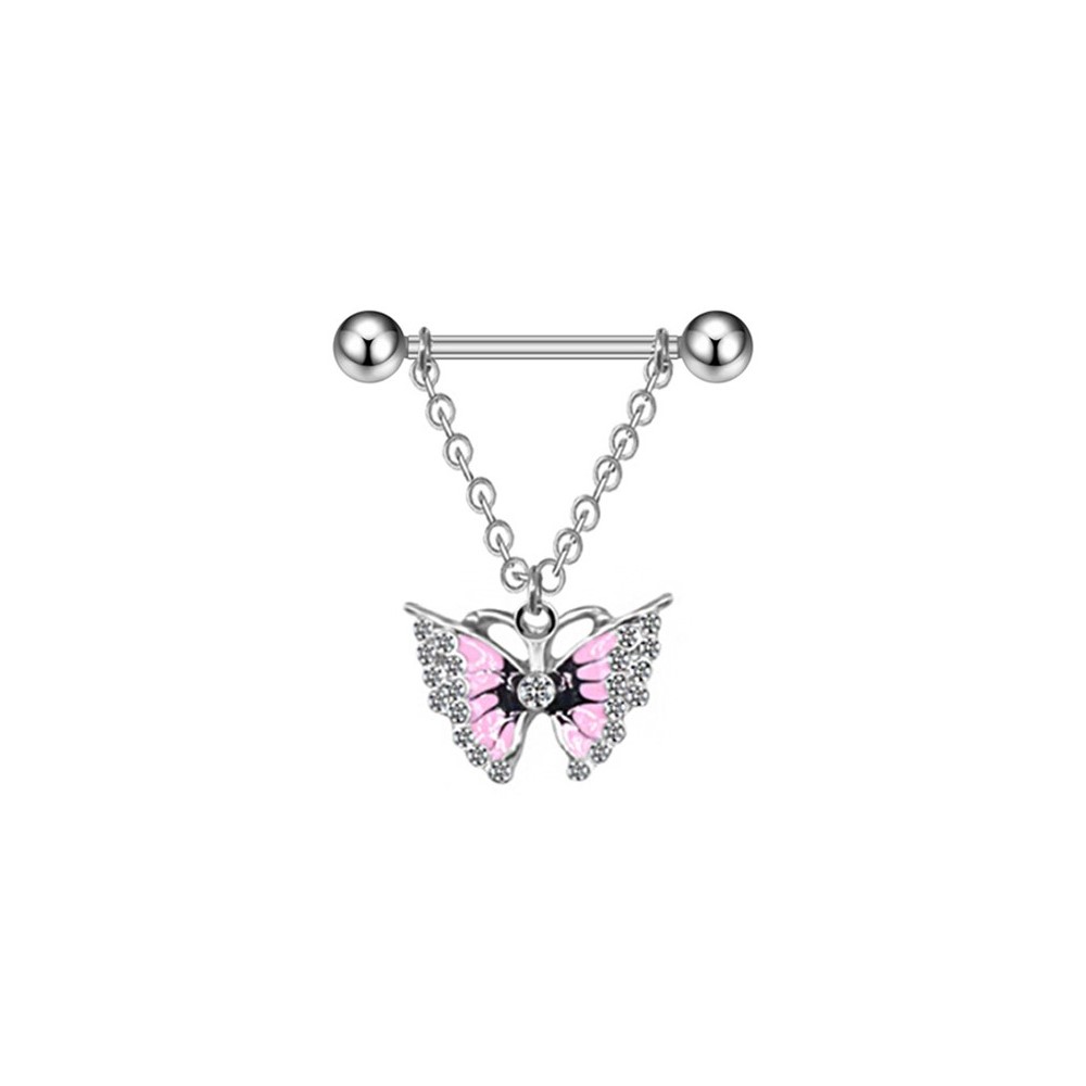 Dieses elegante Brustwarzenpiercing mit Schmetterlingsmotiv vereint femininen Charme mit funkelndem Glamour. Der filigrane Schmetterling in Rosa und Schwarz ist mit glitzernden Kristallen verziert und sorgt für einen edlen Blickfang. Gefertigt aus hochwertigem Edelstahl 316L, ist das Piercing besonders hautfreundlich, pflegeleicht und langlebig. Ideal für alle, die ihren Stil mit einem Hauch von Eleganz und Individualität unterstreichen möchten.